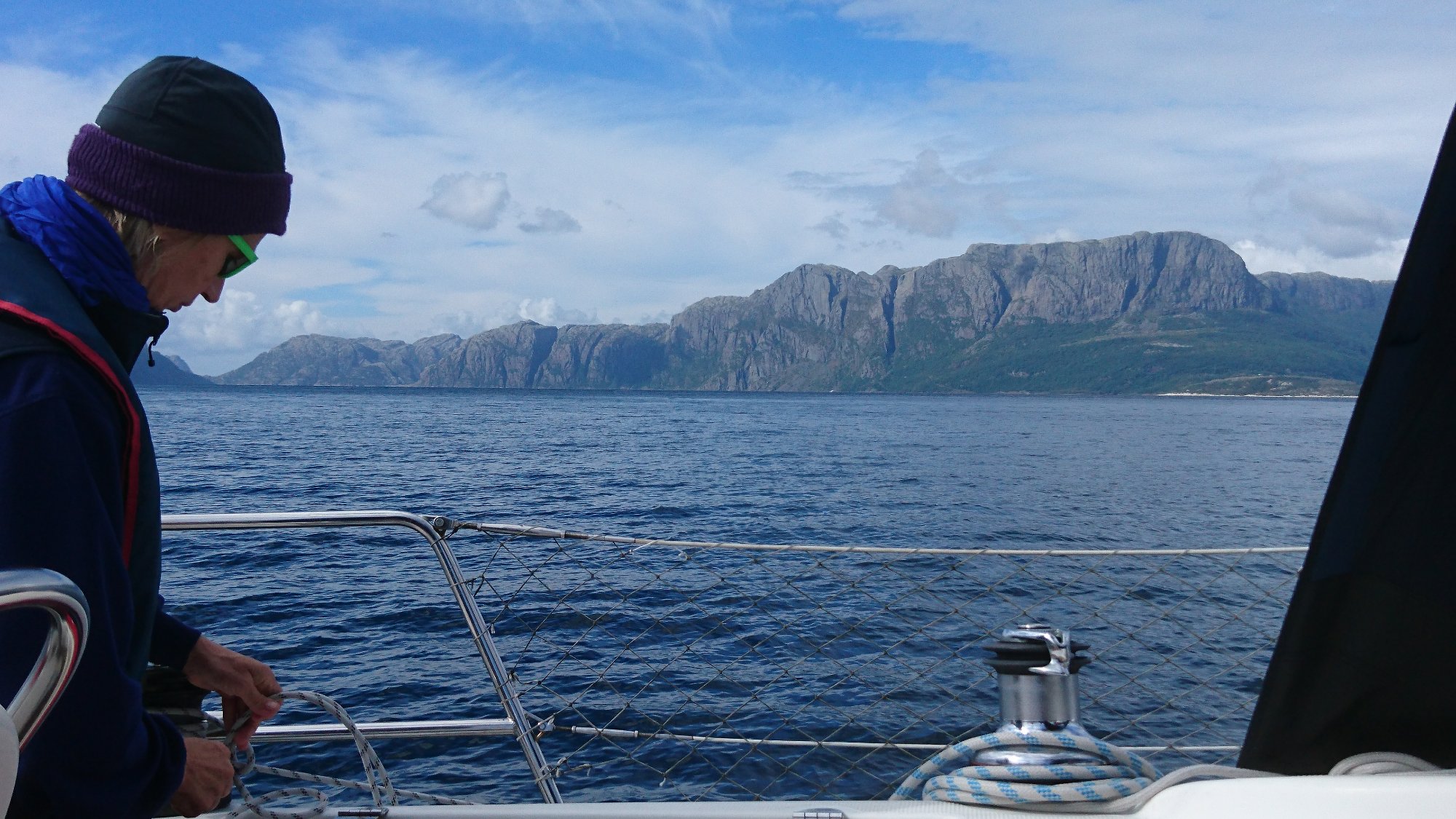 Sognefjord går jo øst vest, så da vi drejede mod øst ind i fjorden blev modvinden til halvvind, og vi satte sejl. Ines fik dig en lur. Og jeg fik mig en lur, og solen begyndte at skinne, så det var skønt endelig at komme til Sognefjor.