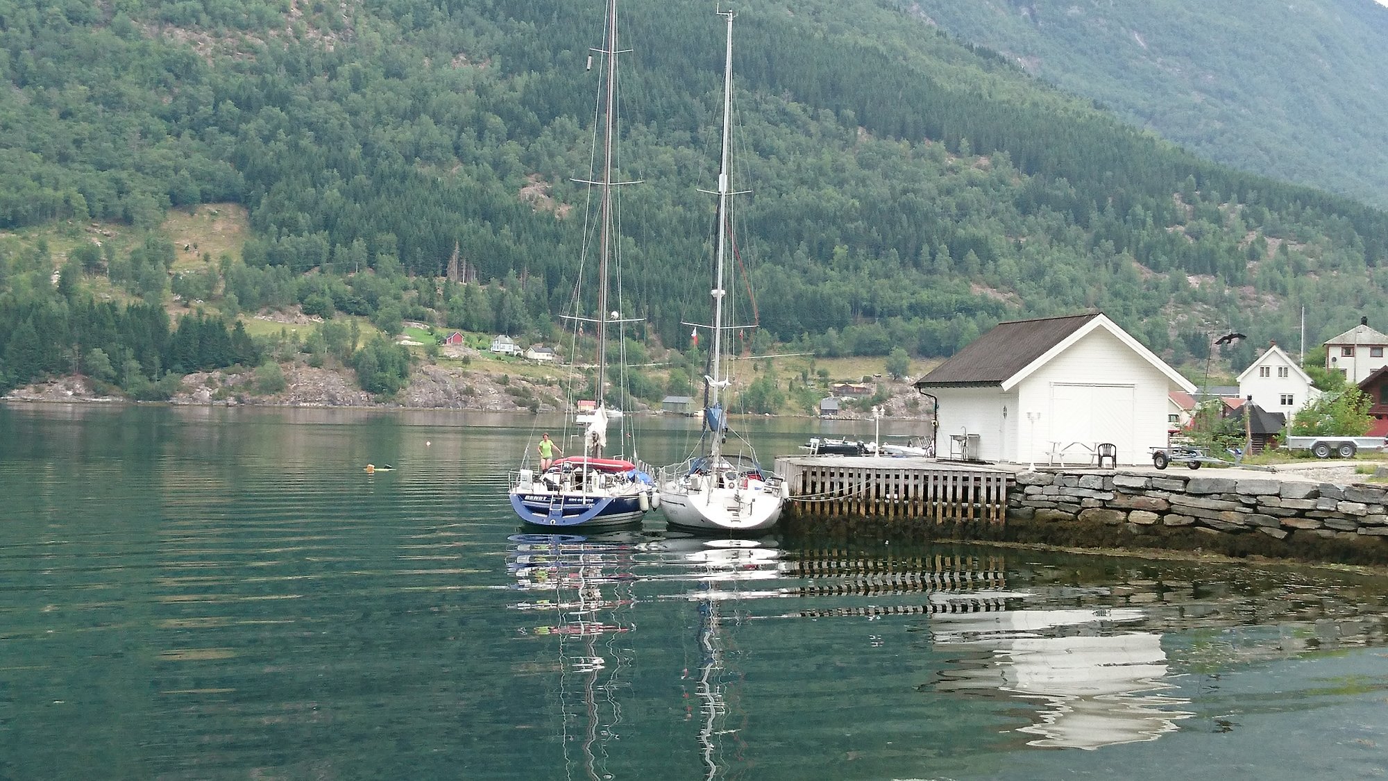 Det er ikke mange sejlere vi ser her i Sognefjord, men igår kom en sejlbåd fra Kiel ind til os i bunden af Arnafjord. Det var jo hyggeligt og vi tilbud at de kunne fortøje ved siden af os, og det gjorde de.