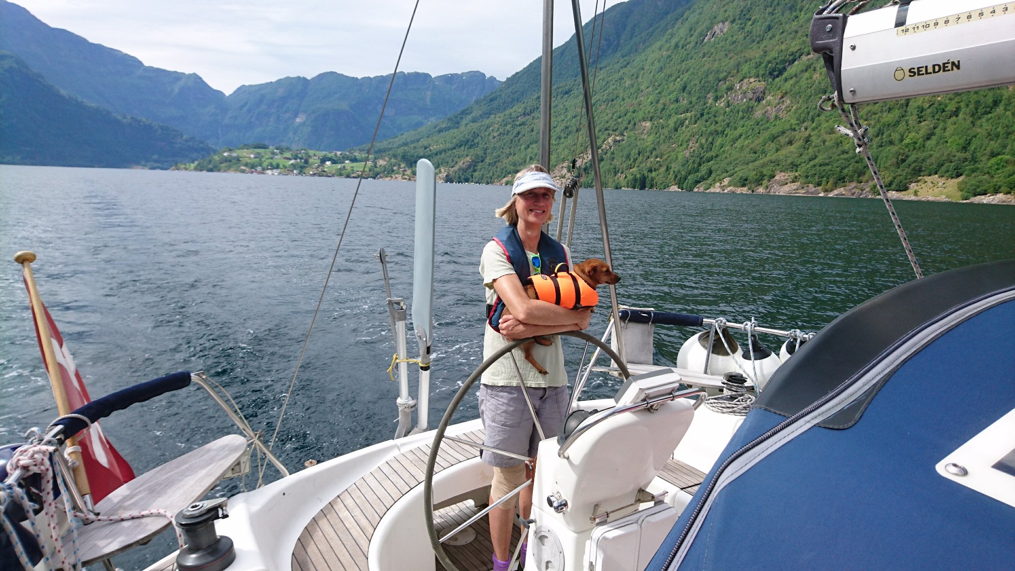 We don’t see many sailboats here in Sognefjord, but yesterday a sailboat from Kiel found us at the bottom of Arnafjord, and we offered them to moor to our boat.
