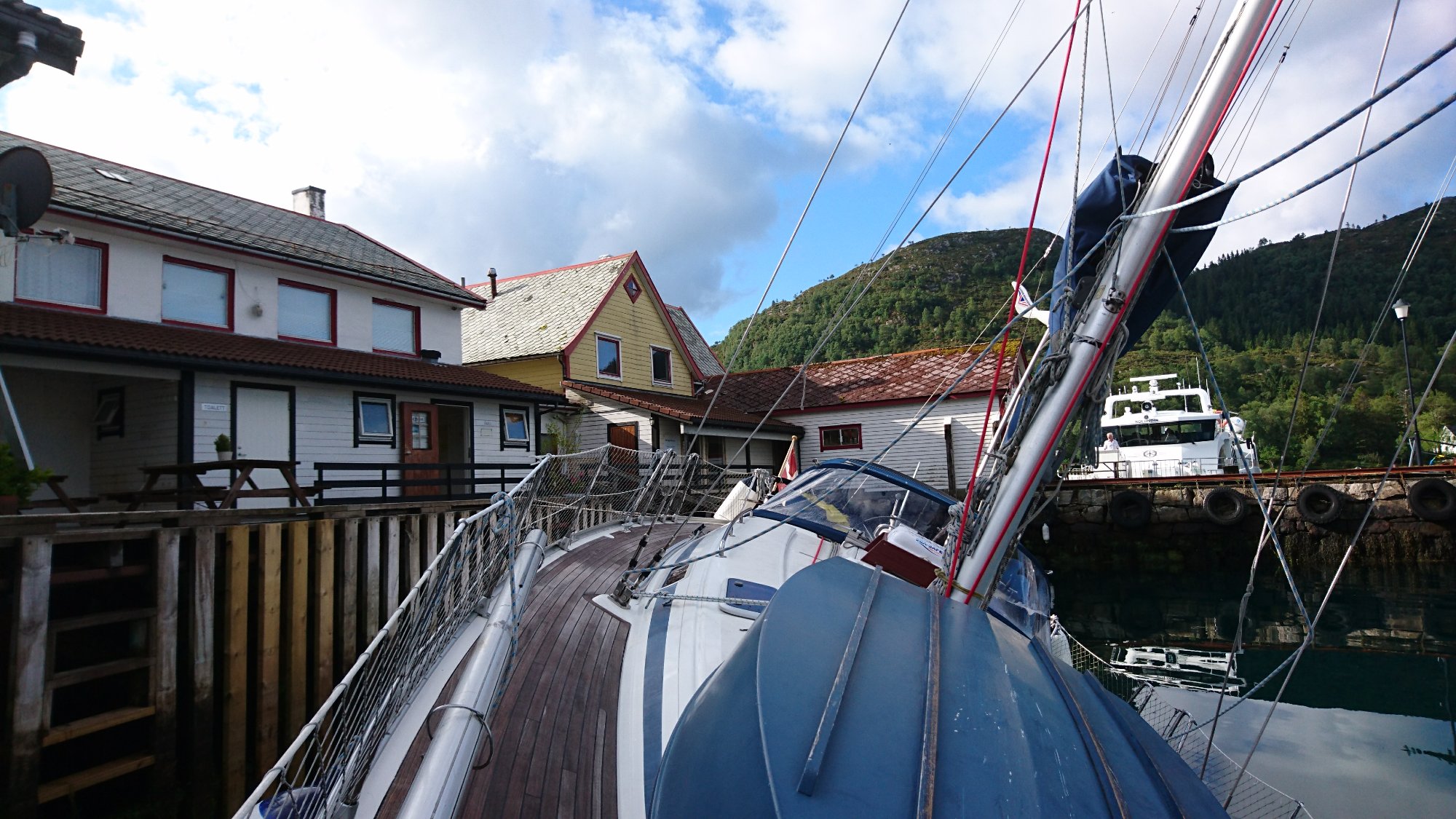 For lidt vand under kølen. Vi sejlede hen til en kaj hvor der var en vandslange. Mens der løb ferskvand i tanken løb vandet ud af havnen, og da vi skulle afsted stod vi fast. Med op til 1,5 meter tidevand kan der komme til at mangle ret meget vand under kølen, og vi kommer nok til at vente i nærheden af i alt 6 timer før vi kommer afsted til Bergen. Lige nu er vi nok halvvejs til vores løsladelse. Meget ærgerligt.