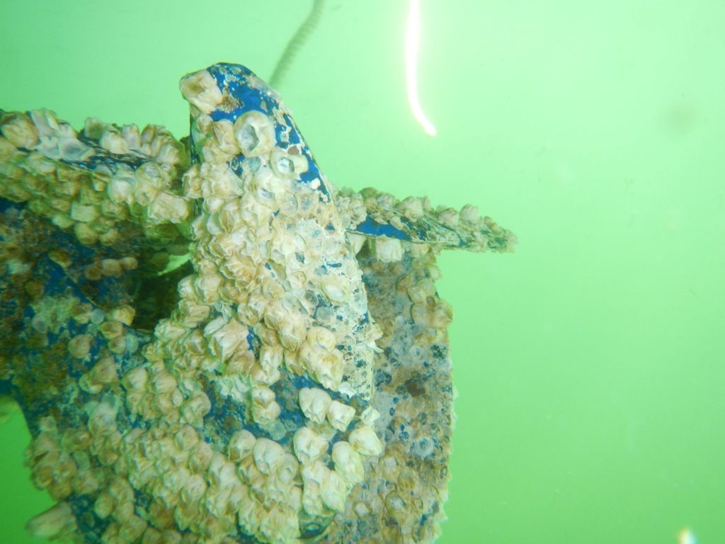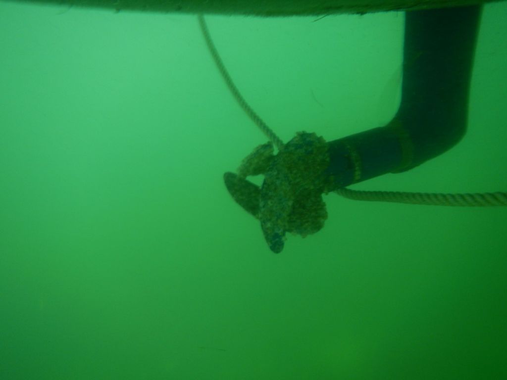 For tre dage siden var Keld og Bettina på besøg, og mens Bettina gjorde rent i det snavsede cockpit, lå Keld nede under båden i dykkerdragt og snorkel og skrabede propellen fri for rurer. Da jeg selv forsøgte at komme derned, blev sig svimmel, et men efter min hjerneskade, som jeg har oplevet tidligere, når jeg var i vandet. Af samme årsag kan jeg heller ikke svømme crawl mere. Idag kan jeg vise jer billederne som Keld tog af skruen, før og efter, og det er tydeligt han var meget grundig.