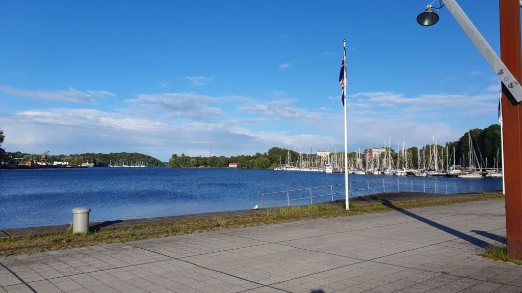 Rendsburg is a cost town with an old citycenter. It was founded in the 1100s on an Island in the river Eider. But I didn’t have much dry weather, so I didn’t do much biking around. I did however, wash and dry a load of clothes, and visit the local supermarket for fresh fruit and vegies. And I did take one trip to town, to study how and when I could buy diesel, that I burn a lot of on this trip.