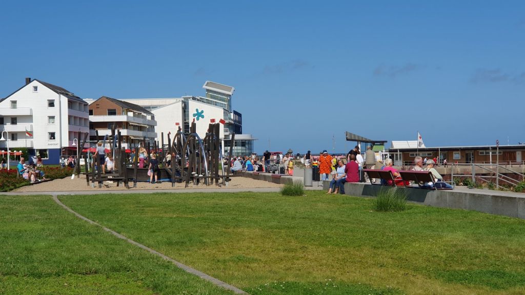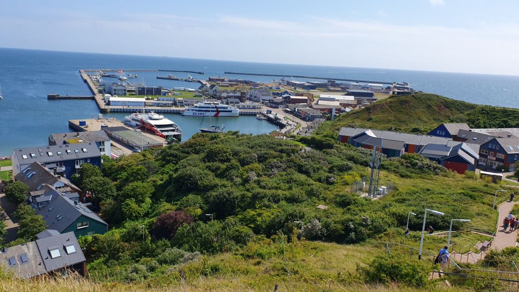 But Helgoland is really nice, with lots of tourists. Exciting shops and restaurants and lots of space. Little cute house and narrow streets, and no cars or bicycles. Yes, bicycling is not allowed on Helgoland. Small electric vans buzz around with goods for the shops who can sell everything tax free.