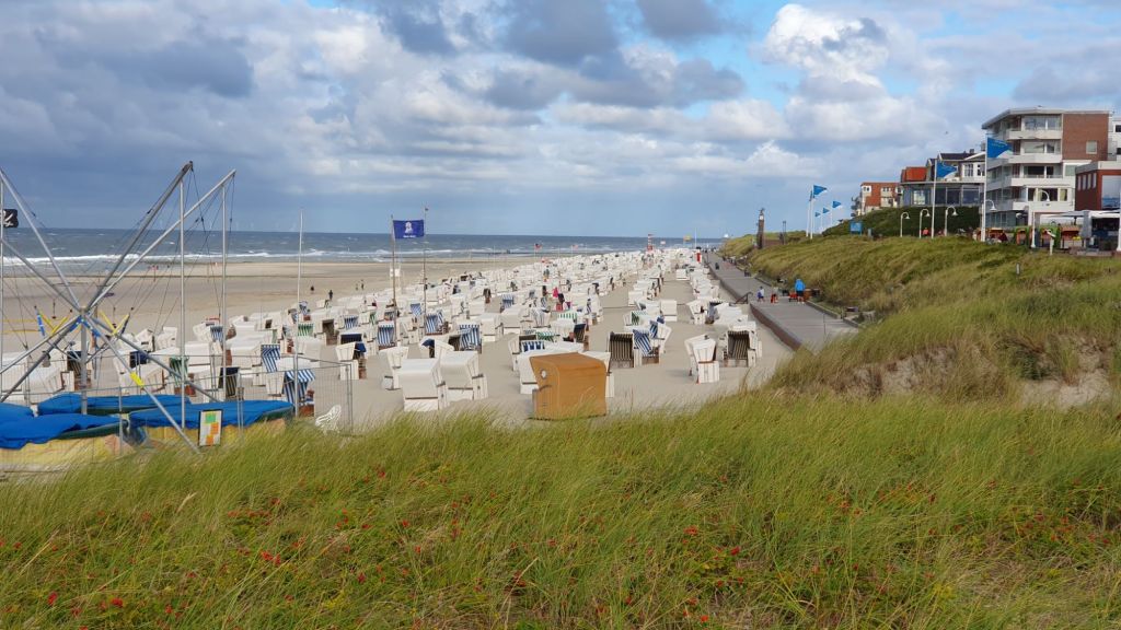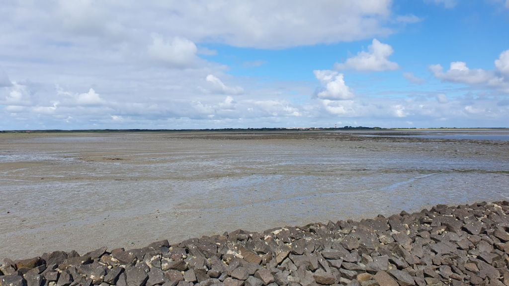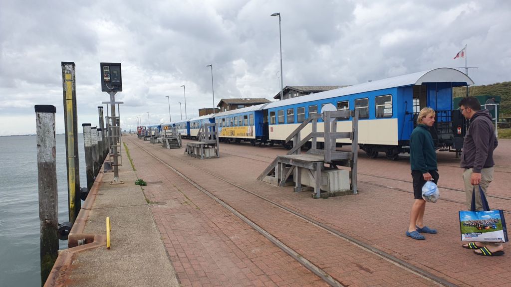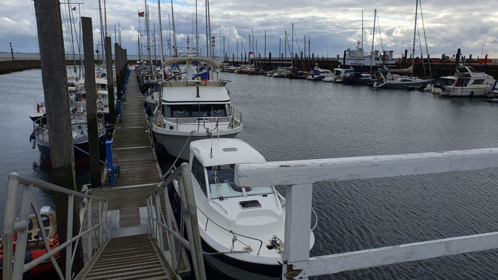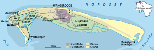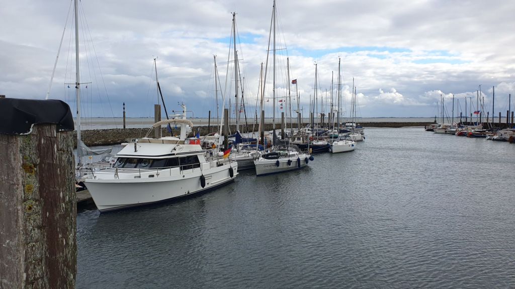 Wangerooge er en vadehavsø, og navnet betyder vangeø. Lex.dk skriver bla. “I det ældste lag af navne fra vikingetiden betyder vang ‘dyrket agerjord’. En yngre betydning ‘afgrænset område, indhegning’ er mest almindelig og er forbundet med vangebrug i dyrkningsfælleskabets tid.” Der er meget sand på Wangerooge, og mange turister. Turisterne ankommer med færgen og havnen ligger i den vestlige ende. Derfra tager de toget til byen midt på øen. Sandet tager en tilsvarende rejse. Pga af fremherskende vestlige vinde og storme flyttes øen langsomt mod øst, hvilket også ses på kortet. Menneskene kæmper naturligvis imod, med diger, kystsikring og pumper, men på naturens betingelser. Vangerooge har også en flyveplads hvor mine tidligere svigerforældre Karin og nu desværre afdøde Georg ofte kom på besøg med deres sportsflyver. Og det kan man godt forstå. Byen er fri for biler, jeg så kun øens “shuttle bus” uden for lufthavnsterminalen, og ellers kun små elektriske varebiler. Og aldrig har jeg set legende børn og cyklister deles om gaderne som i Vangerooge. Der er en enorm promenade højt oppe på det nordlige dige, med fine restauranter og hoteller, og en gågade med “shopping” butikker, og mindst to byparker og en banegård med mottoet “kom igen”. Et meget hyggeligt miljø. Tidevandet var dog det der gjorde mest indtryk. Det er helt enorme mængder af vand som flyttes ind og ud af vadehavet. Og om vinteren er det endnu værre. Flydebroerne som ligger i havnen til glæde for alle de små “sportsboote” bliver taget på land, og husene på havnen er bygget på pæle så de ikke oversvømmes i vinterens storme. Til morgenmad i sejlklubben den sidste dag måtte jeg erkende at sejlads i Danmark er som at sejle i et badekar. Og tyskerne sætte især pris på at i Danmark kan man sove længe, for man skal ikke afsted når det tilfældigvis er højvande.